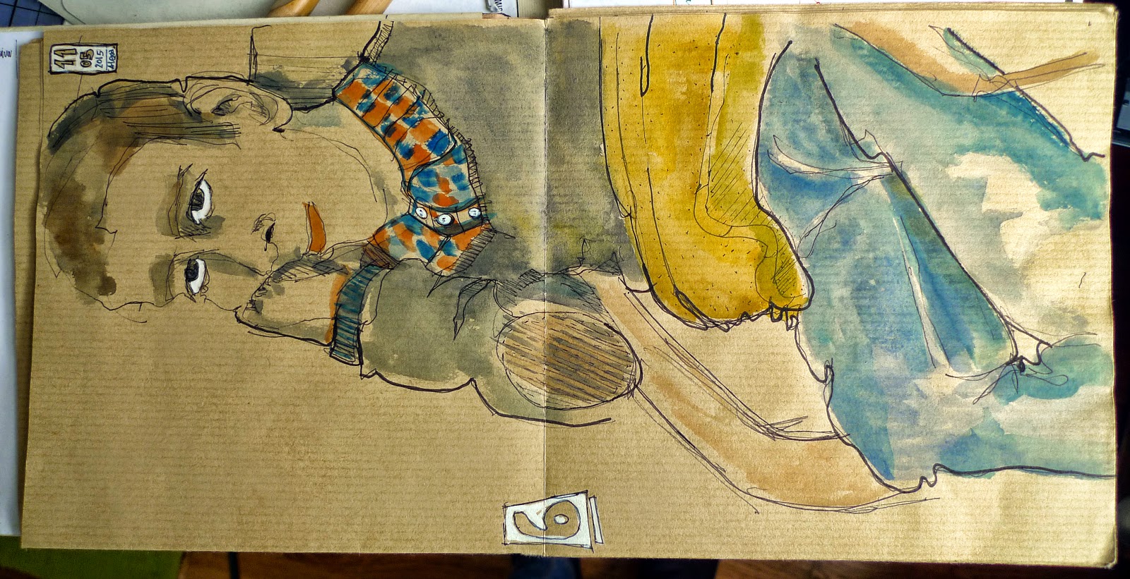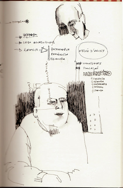 | E nem todos os momentos são de trabalho, felizmente. (Pilot G-tec-C4 , aguarela e Posca) | «in situ» | |