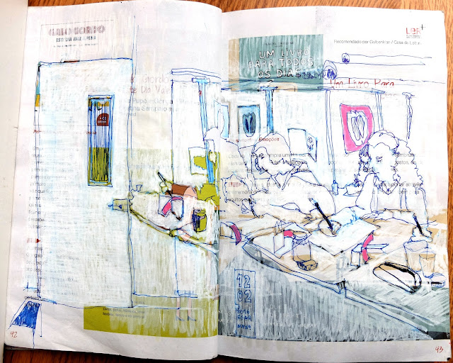 | Vou intercalando as publicações do meu caderno atual com a série: 100 PÁGINAS que crescem comigo. As idas ao Hospital podem ser muito demoradas, não foi o caso. Mal tive tempo para me sentar... ainda bem. |